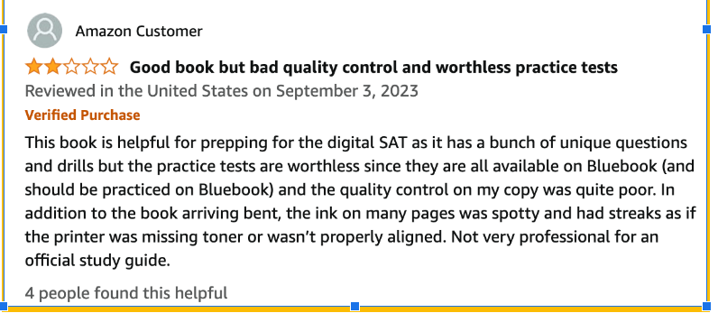 Full disclaimer: The College Board already offers full-length practice tests and other helpful materials on their website, so you can probably find all the info online. We recommend that you download the Bluebook app and use it for practice, whether or not you choose to get this book. Still, if you prefer printed books over digital copies, go for it by all means. Let’s look at the book in detail.