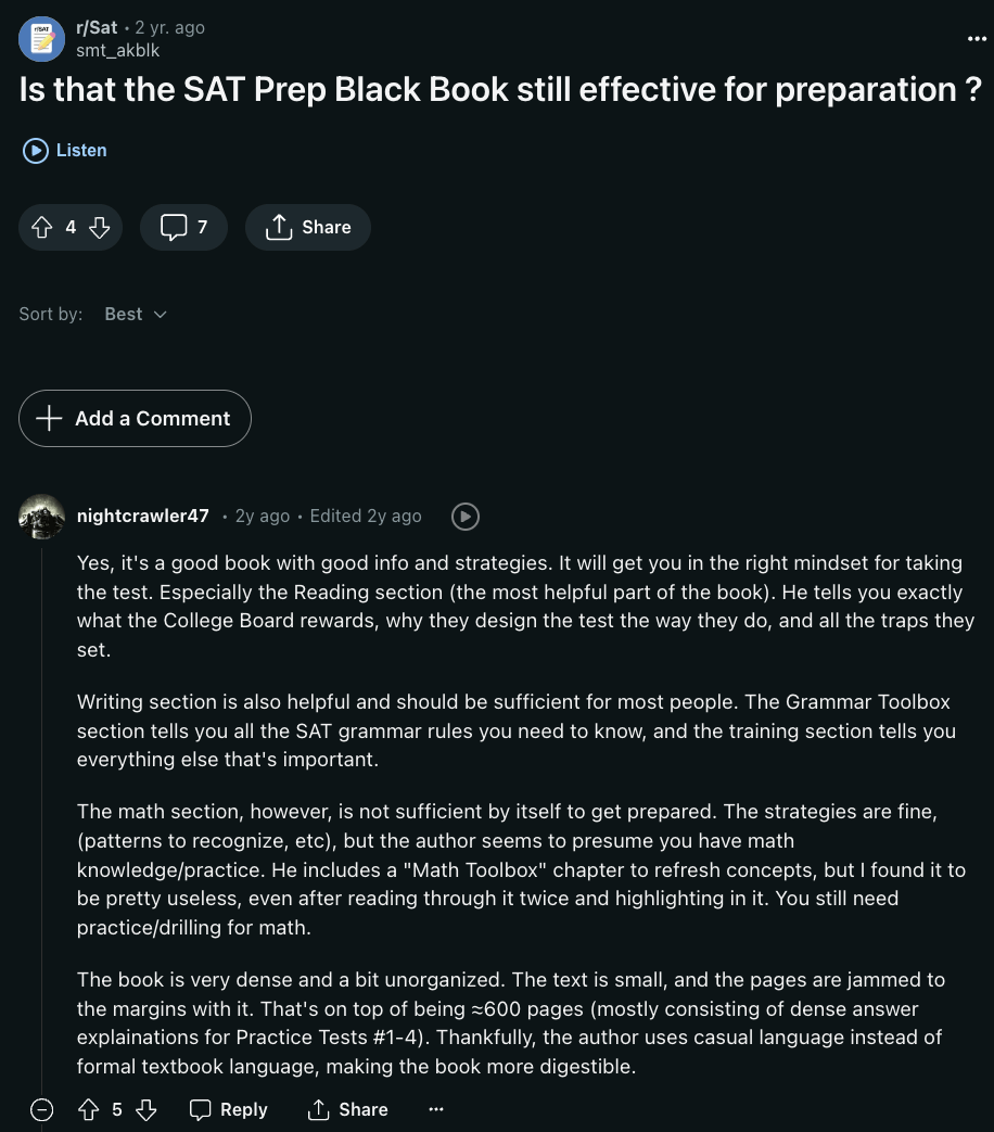 - Even though it’s considered one of the best SAT prep books, some students struggling with SAT math may find it difficult to follow the answer explanations.