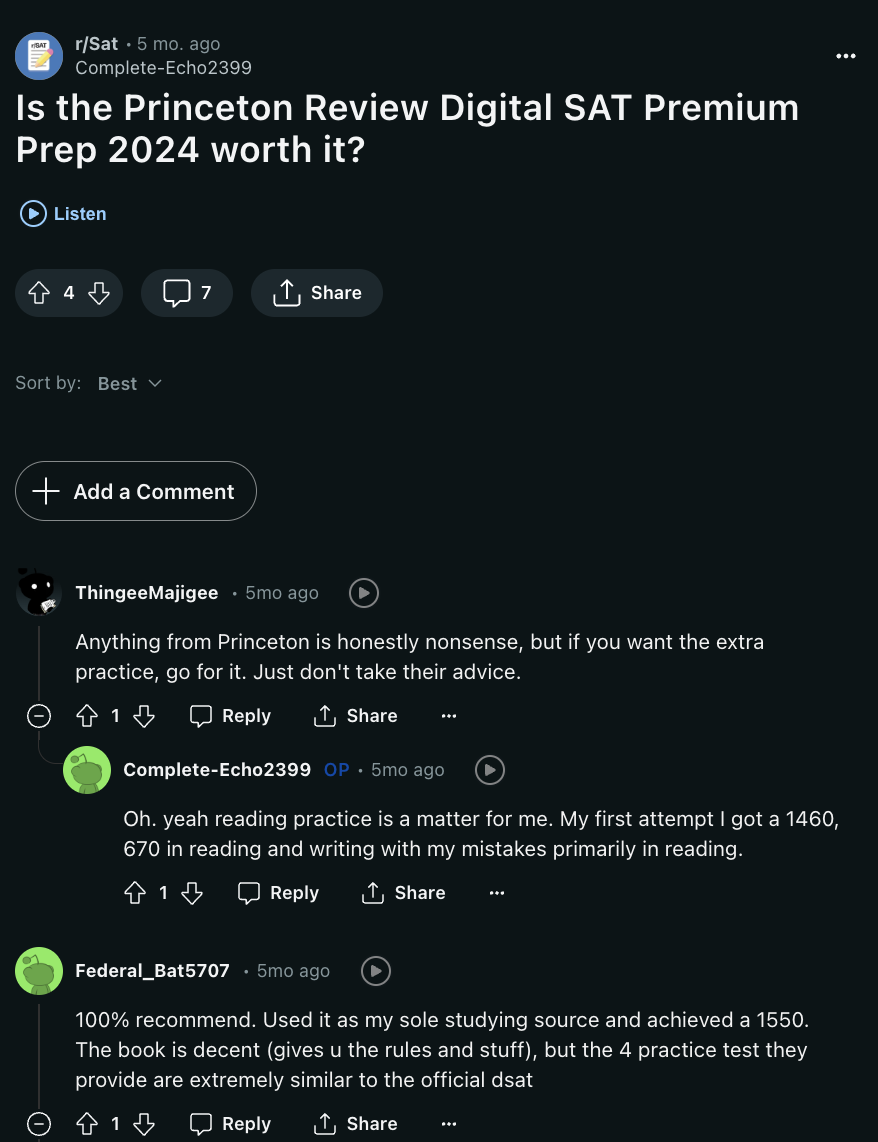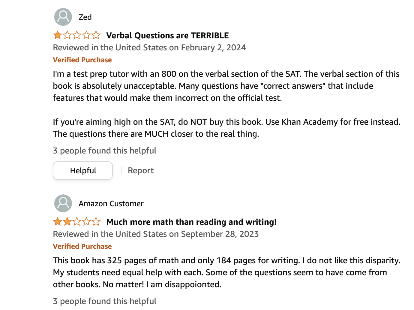 - A reviewer noted that the verbal sections are not very accurate, and another user pointed out that it focuses more on the SAT Math section and gives less attention to the other sections.