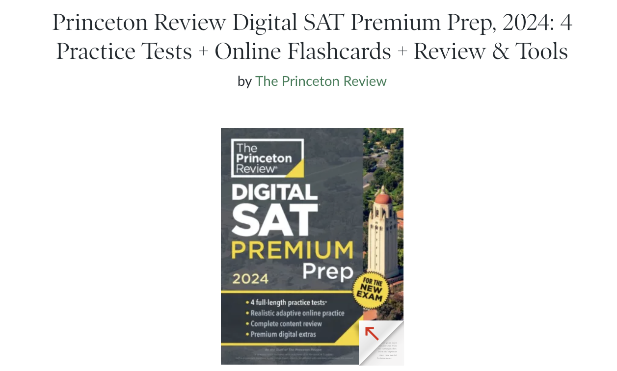 The Princeton Review Digital SAT Premium Prep is another really good SAT prep book. Known for extensive resources and blog posts on SAT-related questions, the book contains practical hints, real SAT practice tests, and tips to improve your problem-solving skills.