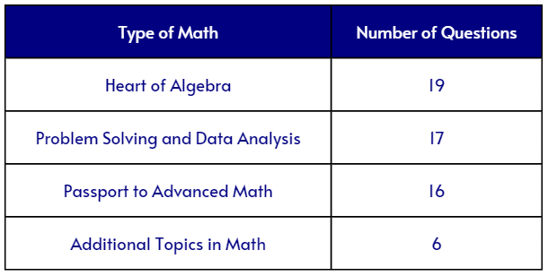 The College Board has provided the breakdown of the average number of questions for each content area. Check the table below to have a quick overview of how you should plan out your SAT math study plan.