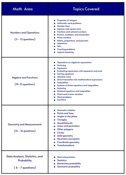 Now, what topics do you need to study to ace these four content areas? Here’s what you need about each content area: