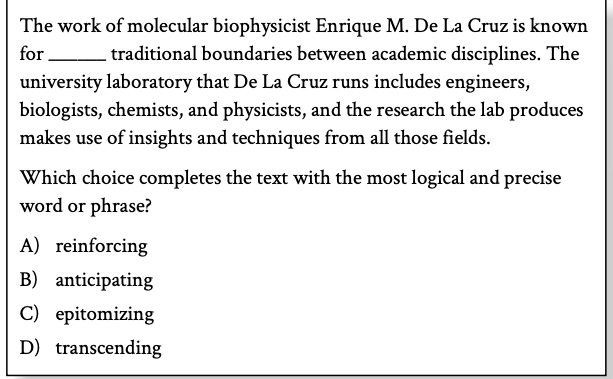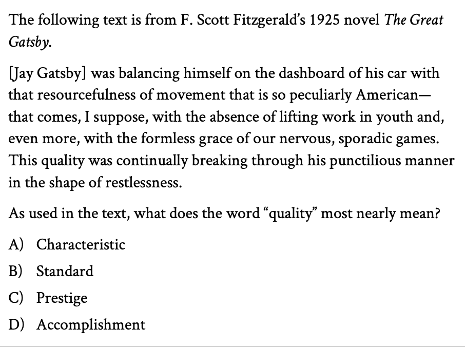 Keep in mind that, unlike the paper-based tests, the digital SAT now has shorter passages for Words in Context type of questions.