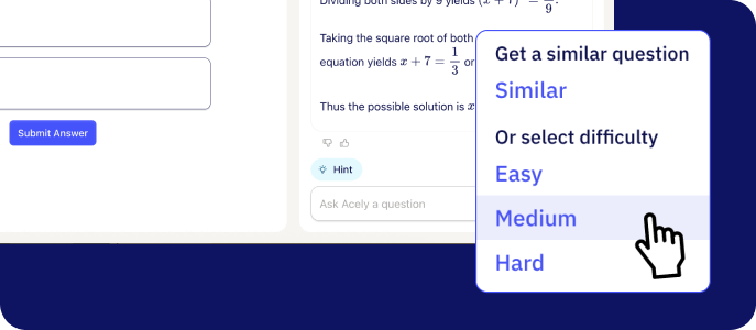 Use Acely’s “select your difficulty” feature to practice easy, medium, or hard questions.