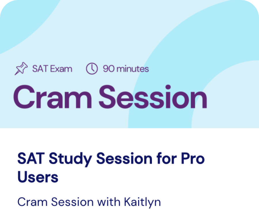 Level up your SAT® and ACT® prep with Acely’s live events. From cram sessions to study halls, we offer everything you’ll need to make sure you’re ready for test day.