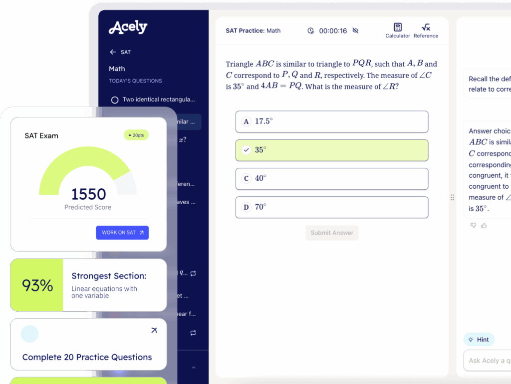 Use Acely’s “select your difficulty” feature to practice easy, medium, or hard SAT questions.